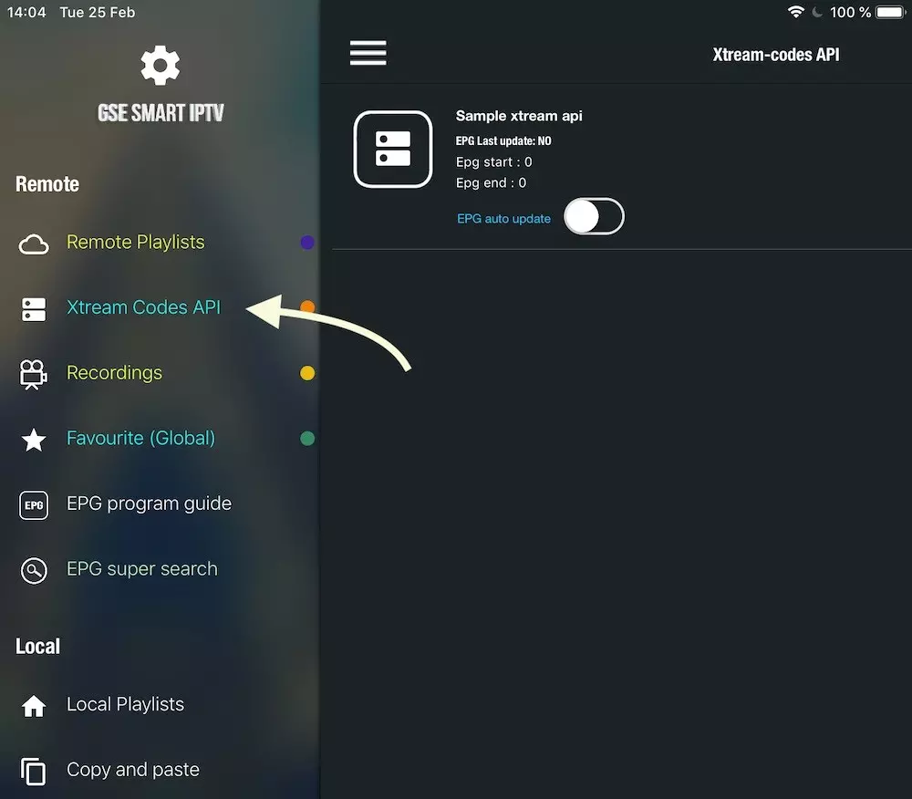navigate to XTREAM CODES PAI section from app menu