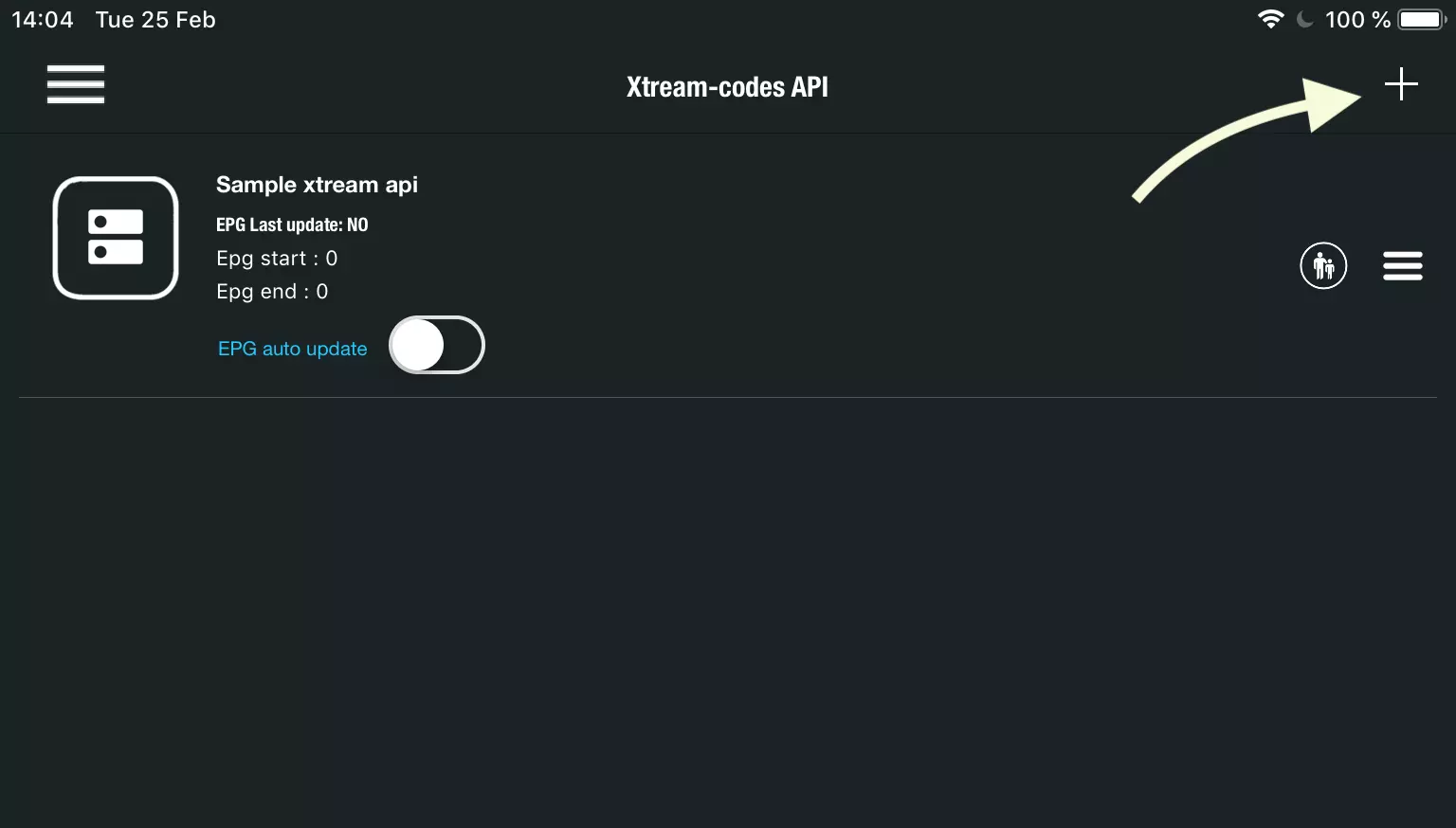 Press + icon to add new XTREAM CODES list