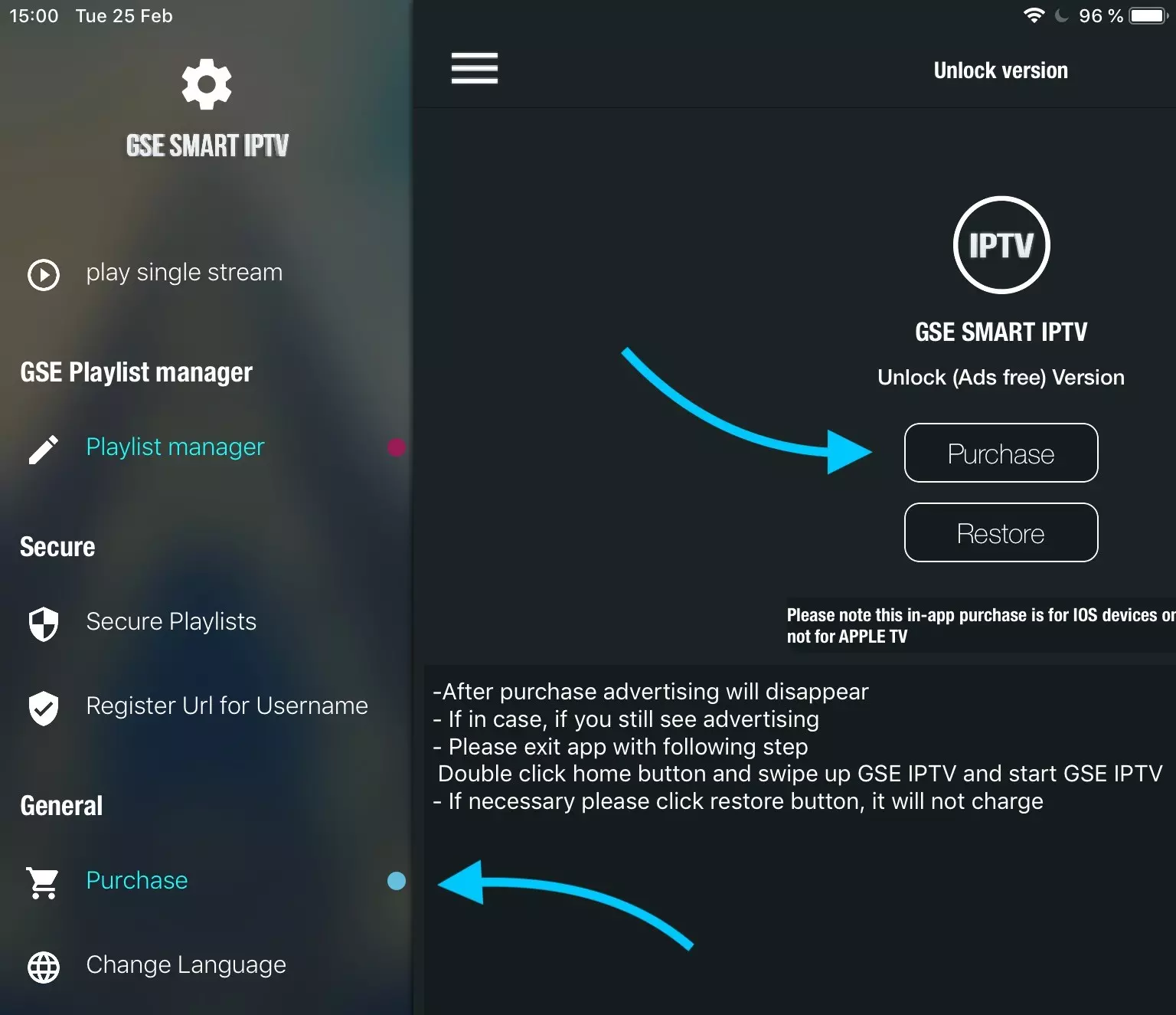How remove advertise from GSE smart IPTV?